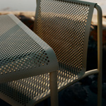 Inspired by the beauty of sunlight filtering through trees, the Dapple Chair adds a sense of tranquility to outdoor areas. This piece is made of powder coated galvanized steel for durability and protection from the elements. Its distinctive perforated seat and back prevents water from pooling, making it equal parts practical and stylish.