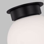 The Nodes Globe Ceiling Flush Light adds a clean simple look to your interior space. The steel frame holds a smooth hand blown glass globe, casting warm shadows across your room. Title 24 compliant if used with Joint Appendix (JA8) approved light bulbs.