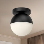 The Monae Ceiling Flush Light adds a bold retro look to your interior space. The orb shaped body is split into two distinct materials, steel on the top and glass on the bottom half that cast warm shadows in your room.