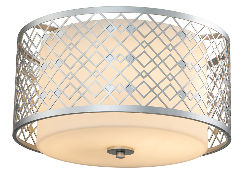 The Ziggy Ceiling Flush Light brings a decorative beauty to your interior space. The zig-zag art deco frame surrounds a drum shaped glass diffuser that casts warm shadows of light across your room.