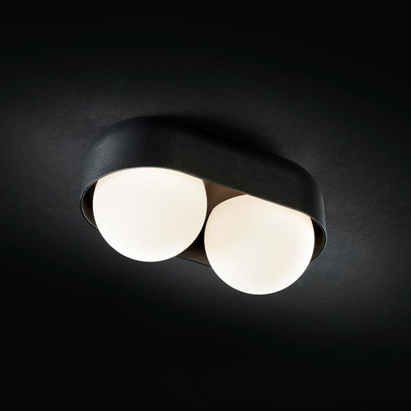 The Dice G9 Wall / Ceiling Light features opal white glass spheres nestled within an oblong housing for a playful, modern look. Each globe diffuses light to provide soft, pleasant illumination. The fixture can be mounted on the wall or ceiling, allowing for the creation of interesting compositions and repeated visual motifs when multiple fixtures are installed together.