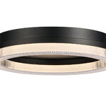 Elevate your space with the modern elegance of the Ari Color-Select Ceiling Light. Its sleek black frame and ribbed clear bottom lens create a soft, mesmerizing glow. This model has a three way color switch to choose the color temperature of your preference (3000K, 4000K, 5000K).