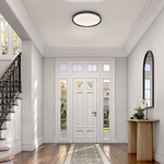 The Luna Color-Select Ceiling Light is a celestial masterpiece, blending modern elegance with cosmic allure. Its black frame cradles a textured moon crater lens, through which a soft, glittering glow emanates, evoking the magic of starlit skies. A subtle side cutout allows ambient light to gracefully spill onto the ceiling, creating a halo-like effect that transforms any space into a serene sanctuary. Equipped with a five-way color temperature switch (2700K/3000K/3500K/4000K/5000K), this fixture allows you to easily customize the brightness to your desired setting, ensuring the perfect ambiance for any occasion.
