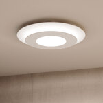 Featuring two aluminum plates arranged in tandem, the Offset Round Ceiling Light Fixture offers a sleek, geometric look for your space. The integrated LED light shines from between the plates through an acrylic diffuser, providing both ambient illumination and a powerful downlight. The included driver is located in the canopy.