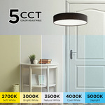 The Ashland Color-Select Ceiling Light is a sleek contemporary drum fixture. The linen fabric shade provides soft texture, while the acrylic diffuser softens the light. Perfect for a variety of applications, including hallways, bathrooms, laundry rooms and kitchens. LED color select options include 2700K, 3000K, 3500K, 4000K, and 5000K. Dimmable via 0-10V for 120-277V and TRIAC/ELV for 120V.