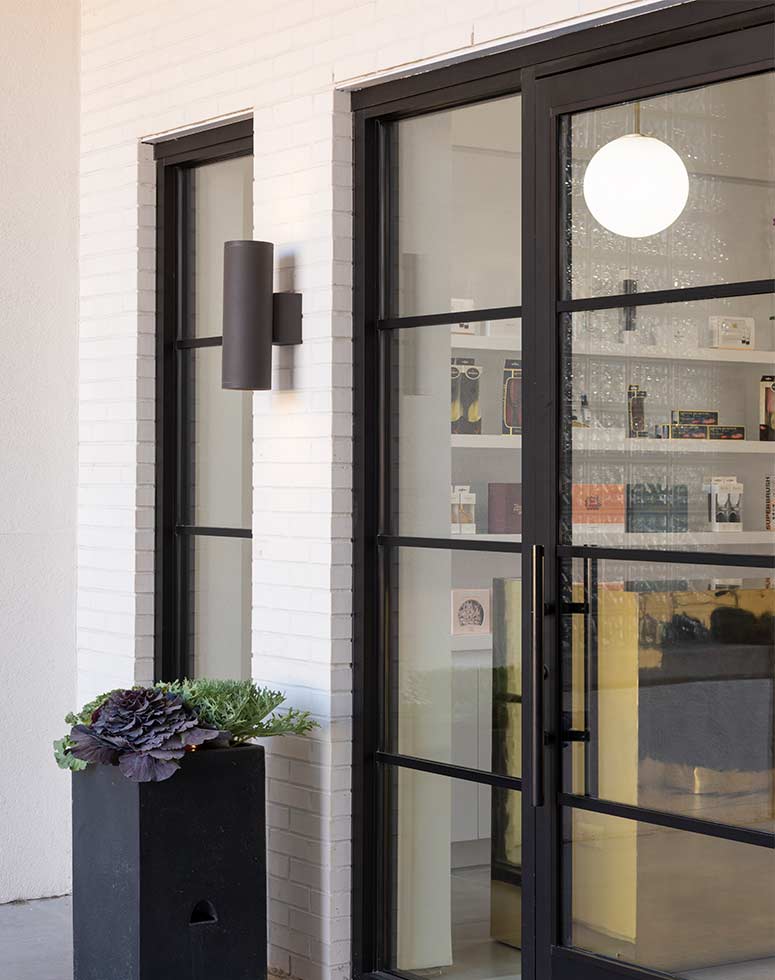 The lighting design of the main styling area is not as cut and dried as one might assume. Both decorative and task lighting must be utilized in concert, to illuminate the precise nature of a stylist's work but also provide a comfortable, relaxed vibe for salon clients. In this space, it's just enough of both as the sturdy vision of salon ownership and the experience of Lightology lighting consultant Alyssa Barton partnered for something beautiful.