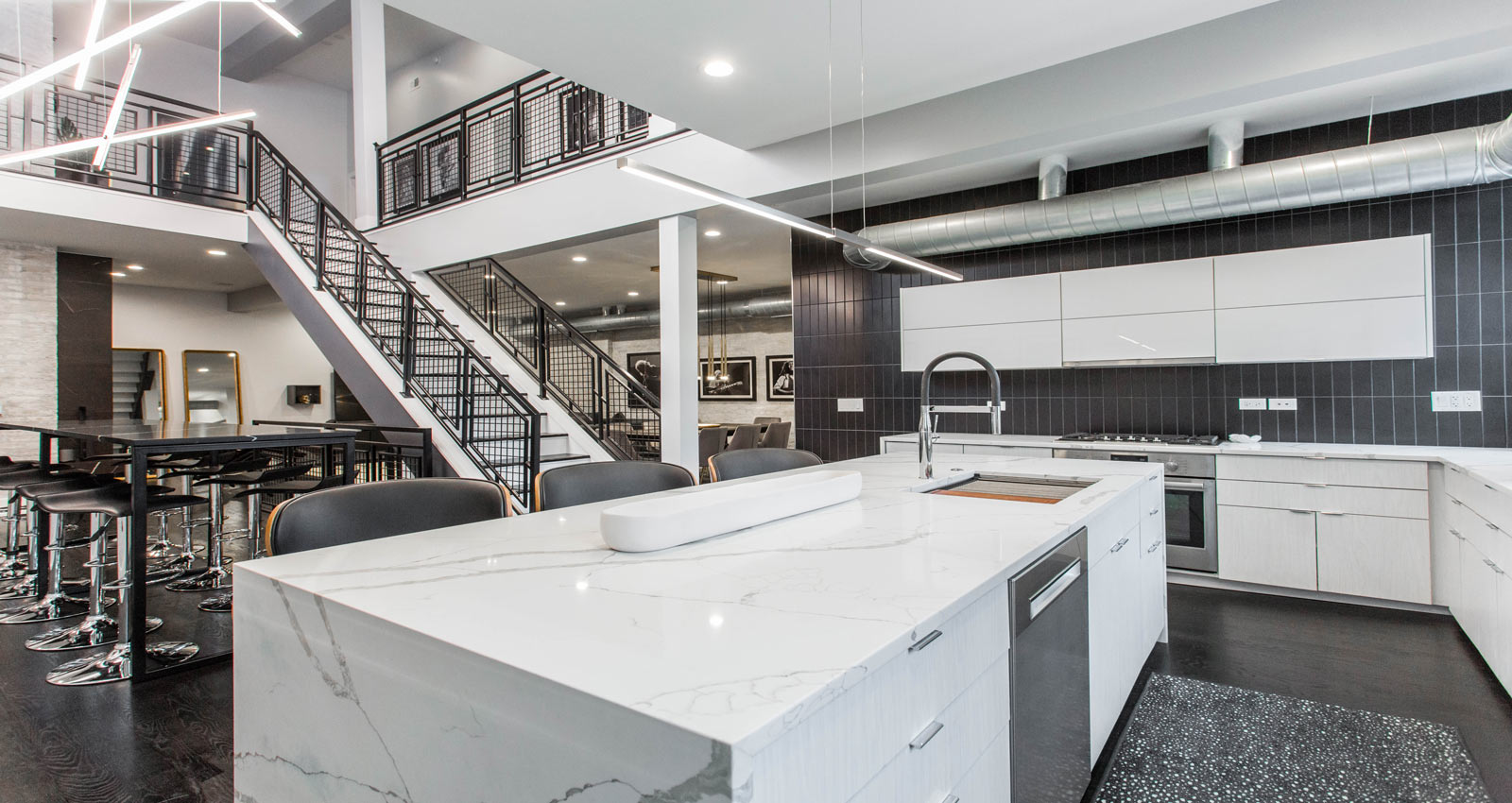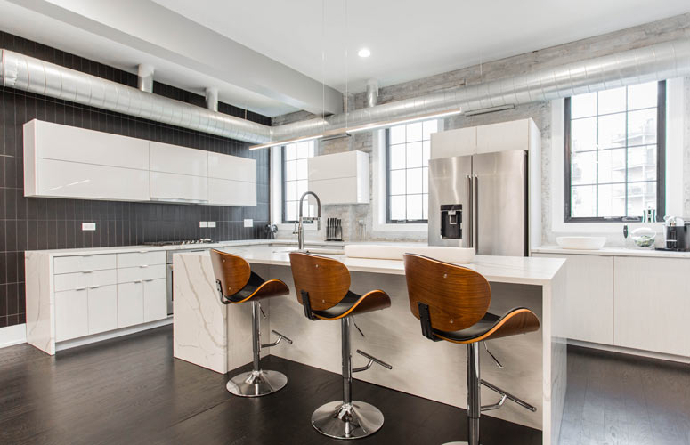 Real Estate investor and agent, Laura Kelly shows off her modern eye with this spectacular condo renovation, far from its roots as an early 20th century firehouse. Situated in the River West neighborhood, this Chicago Airbnb listing is right at home among many other modern industrial renovations typical of the area.