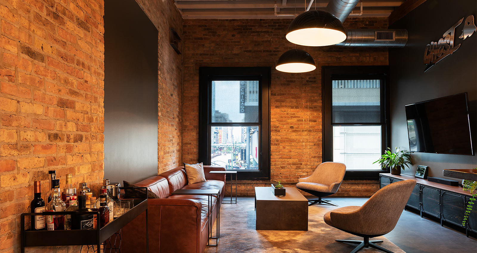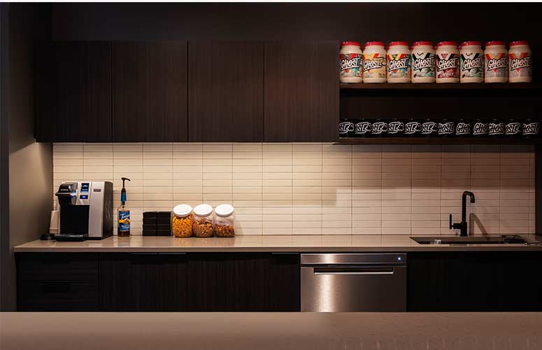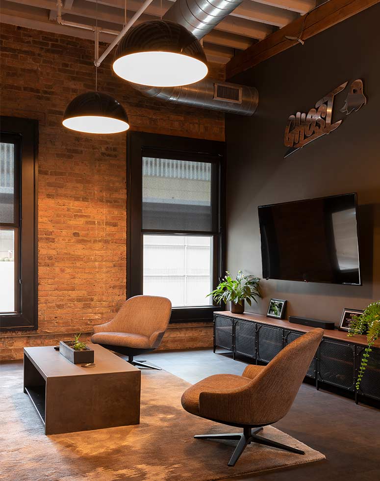 Growing sports and nutrition brand, Ghost Lifestyle, shows off its modern industrial office setting in the trendy River North neighborhood of Chicago, Illinois.