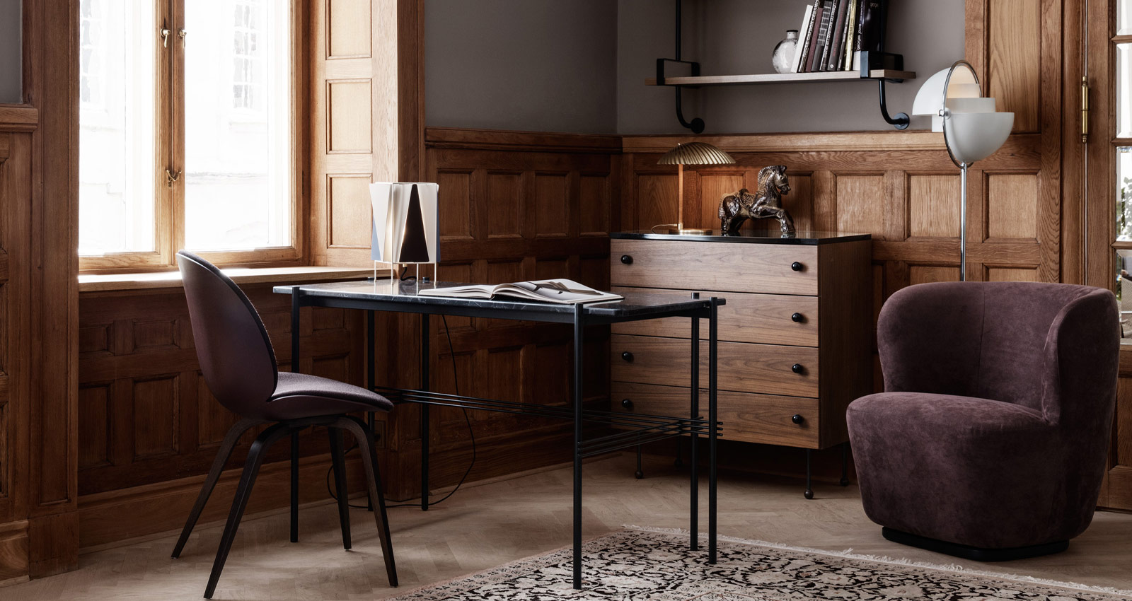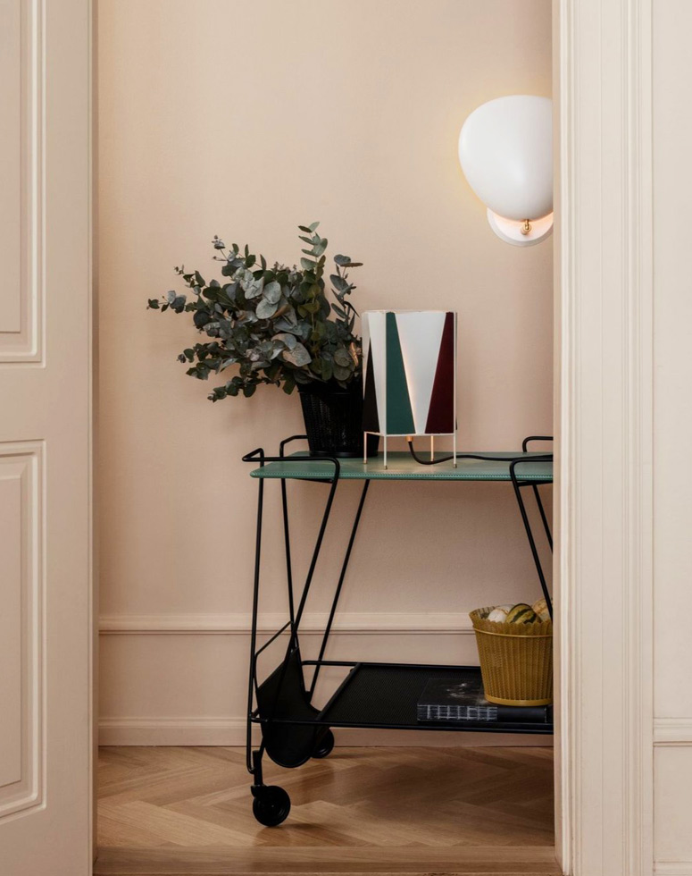 Eye-catching and elegant in its geometry, the B-4 Table Lamp still makes a strikingly modern statement in all types of spaces. It is available in White with Black, Chianti Red, French Blue or Italian Green accent panels. In addition to the B-4, Gubi offers an entire collection of Grossman lamps and furnishings - including her beloved Grashoppa Lamp and Cobra Lamp.