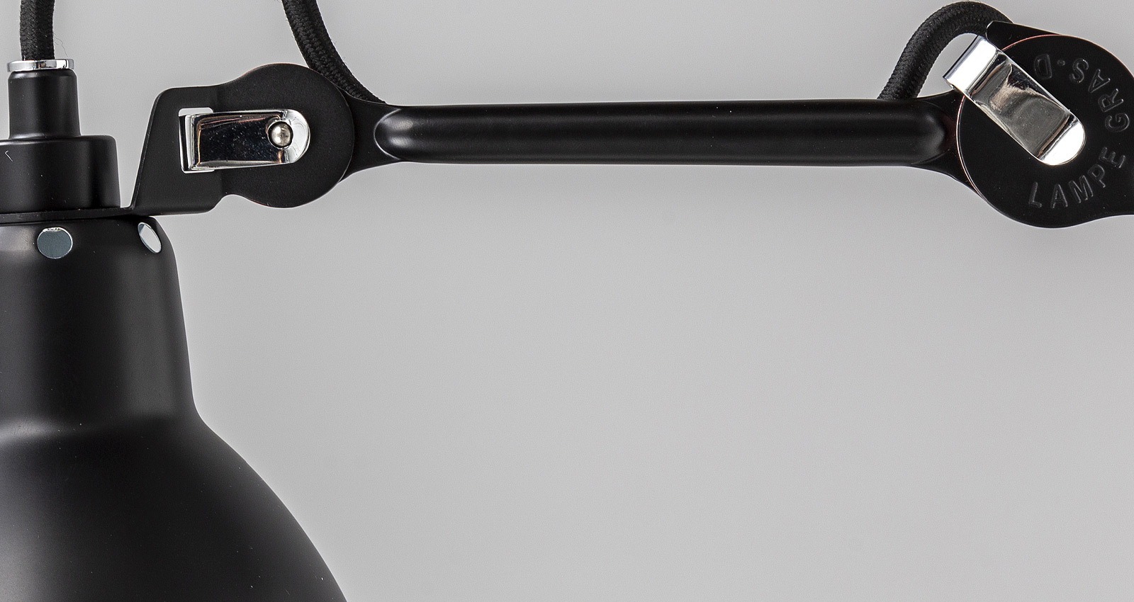 The Gras lamp was astounding at the time for its solid, ergonomic and highly innovative design. Amazingly, there are no screws or welded joints in its basic form. Its functional aesthetic was truly original and far ahead of its time, especially the details in the arms, stems, brackets and bases. Famed architect Le Corbusier celebrated the Gras lamp as an outstanding example of his approach to understated design.