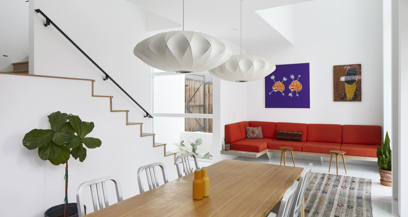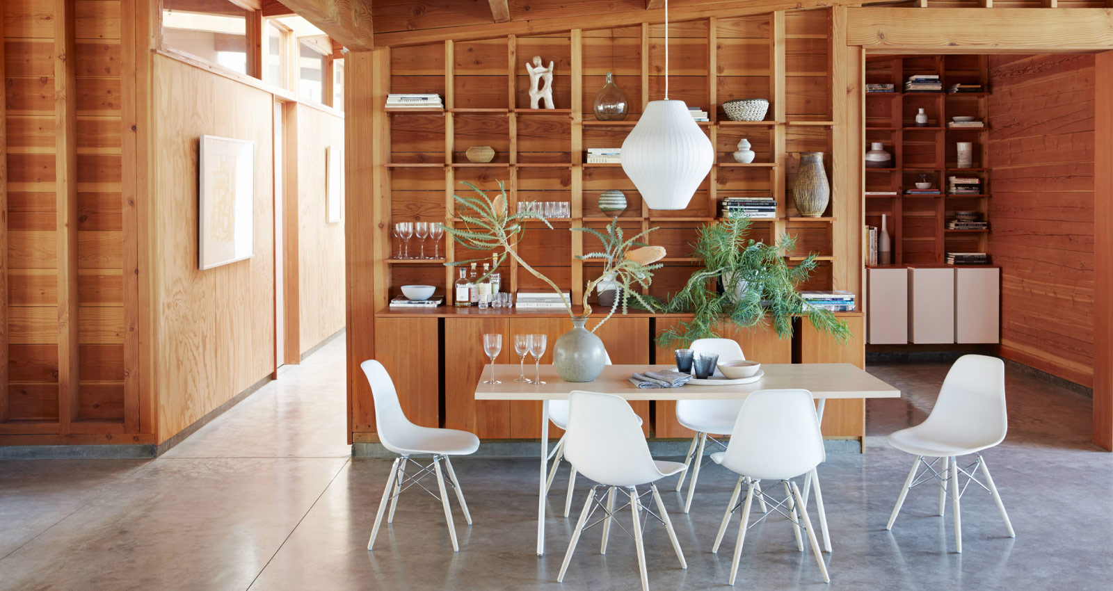 The first lamps were released to the public with great fanfare in 1952. Influential industrial designers Charles and Ray Eames hung Nelson's Bubble Lamp in their Pacific Palisades living room, inspiring the country to follow. The popular collection quickly evolved to include many shapes, like the saucer, bell, pear and cigar pendants, as well as wall, floor and table lamps.