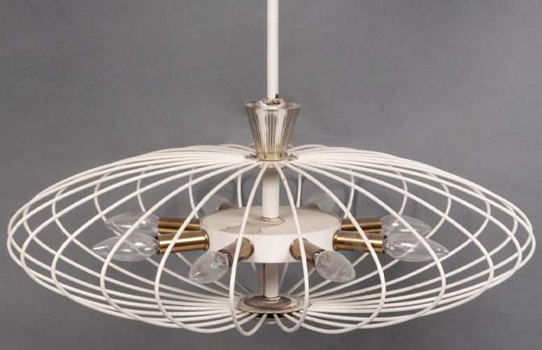 It was in 1947 also that George Nelson set his sights on a Swedish spherical lamp, featuring a wire frame wrapped in silk. He wrote, "We had a modest office and I felt that if I had one of those big hanging spheres from Sweden it would show that I was really with it, a pillar of contemporary design." The one he found for sale was $125, out of his price range.