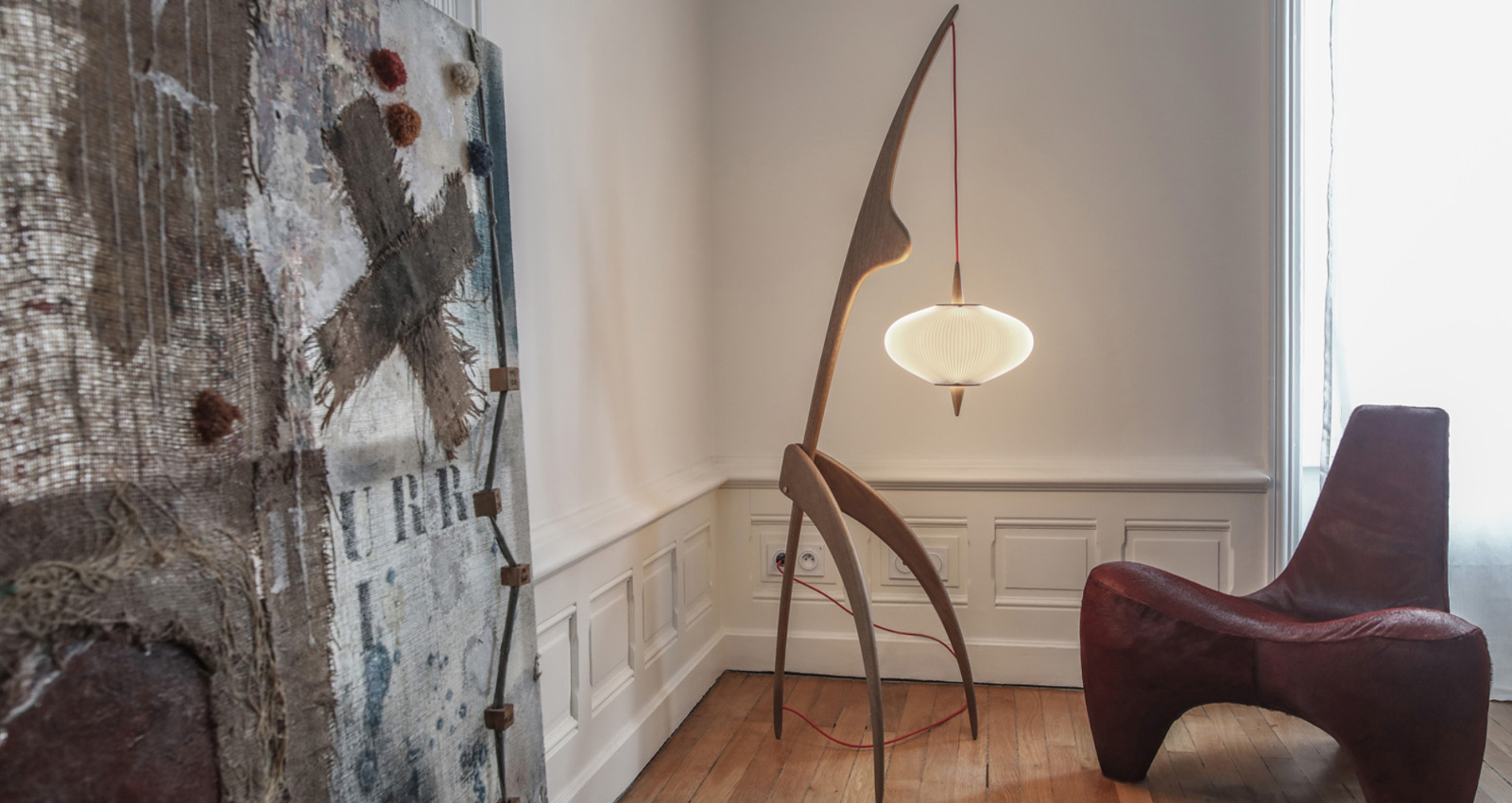 Rispal, 1950 - reinvented by Douglas Mont, 2018Originally designed in 1950 and out of production for decades, the eye-catching Praying Mantis Lamp returns in updated, sustainable materials for today's spaces.