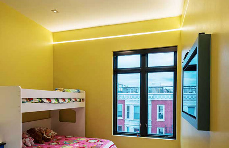 The Reveal Cove/Pathway Plaster-in LED System from PureEdge Lighting redefines the relationship between lighting and interior design. Blending seamlessly into the drywall, this lighting system accents the architecture with a modern edge. An excellent glare-free solution for all kinds of lighting applications, it coordinates effortlessly with the existing pendant and recessed lighting to make the contours of each room glow.
