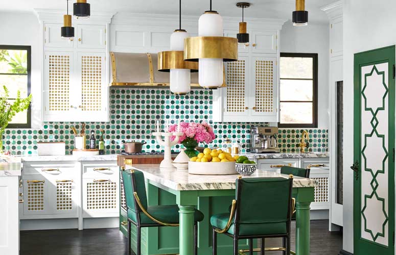 When it comes to the kitchen, color is your friend. From painted cabinets and patterned backsplashes to parquetry floors and beyond, there are myriad opportunities to give your kitchen a little character. If you're worried the flavors won't come together, create a moodboard before you start "cooking."