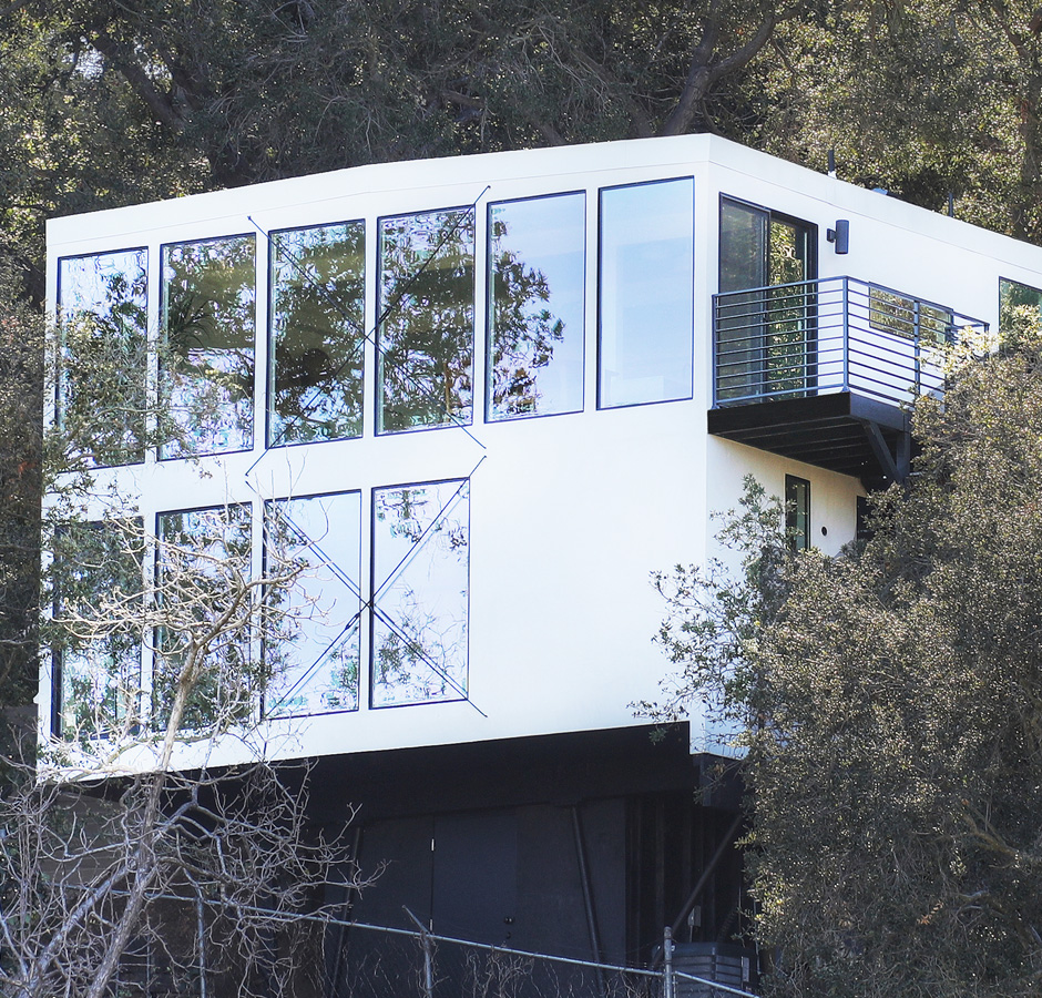 Hovering above the Sunset Strip, this panoramic California casa pairs earthy materials with treetop views.