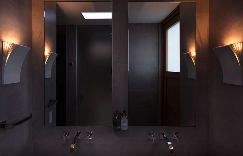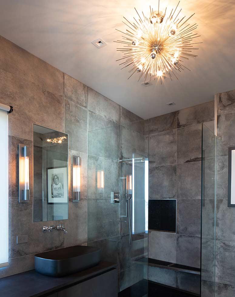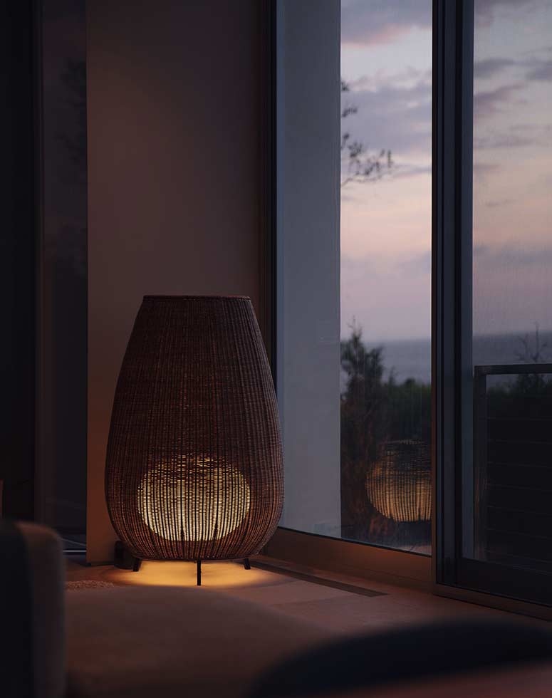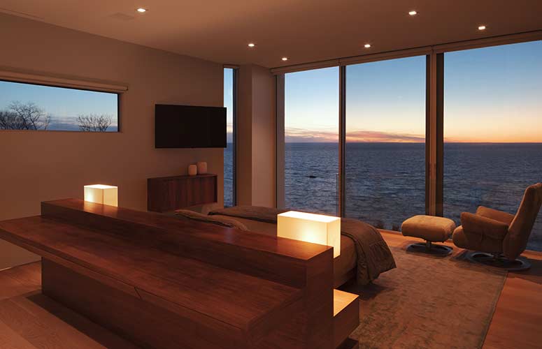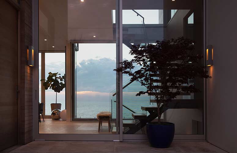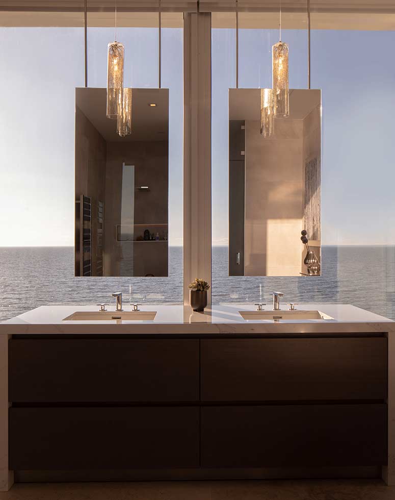 The lighting design of the home was formulated with two main concepts as the highest priority: creating warm, ambient light that matched the varied hues of the ocean and allowing the natural light of the environment to light the home in concert with curated, designer lighting. A similar ideology was employed when choosing the materials to cover the walls, floors, and ceiling: "the out blends with the in" Stephanie explains "organic vibes relax my mood and by extending the beauty of the exterior to the interior, I am at peace with home and nature."
