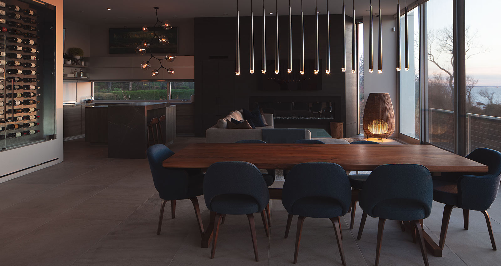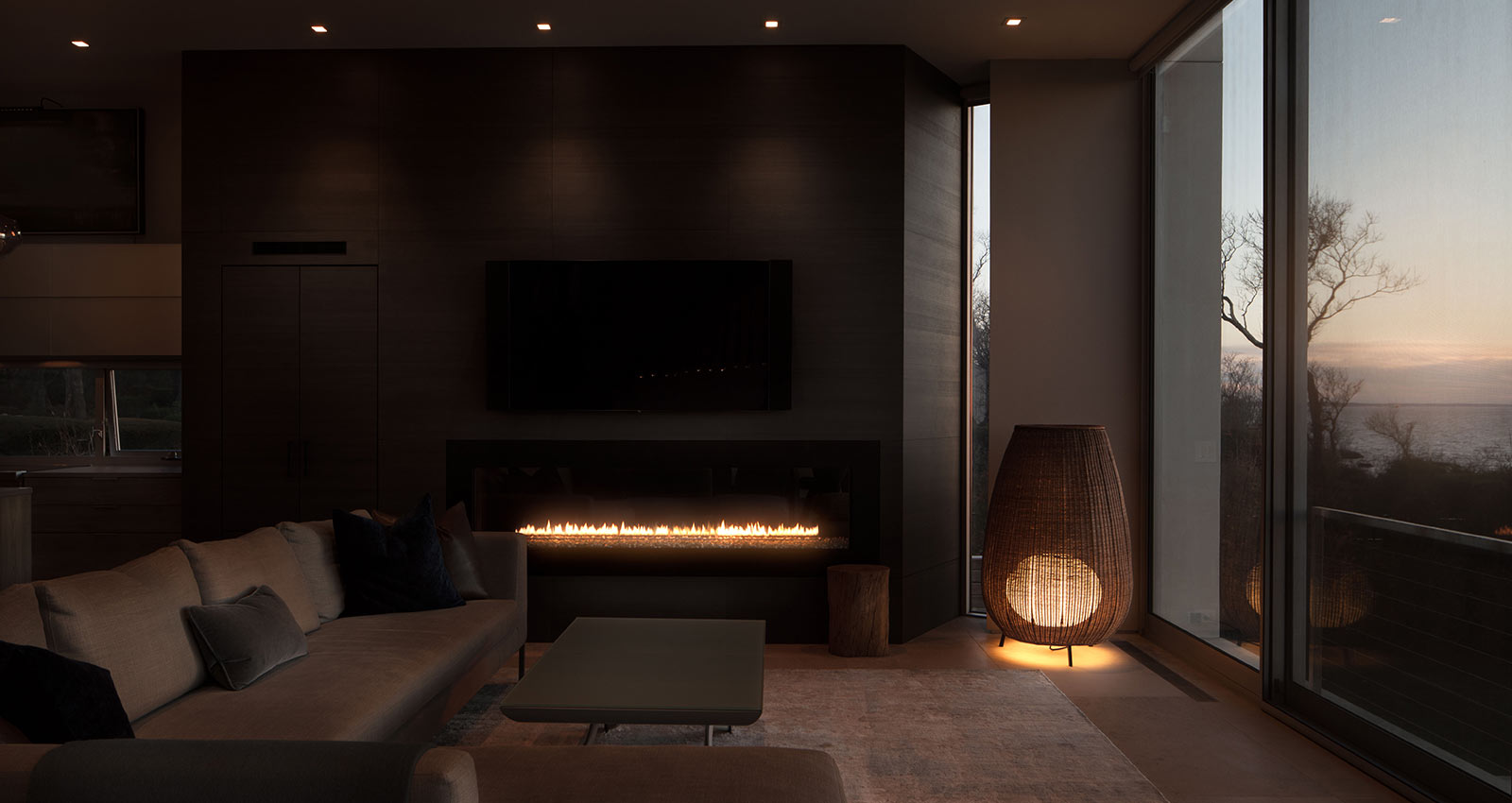 Surrounded by the serenity of the Atlantic Ocean, this Long Island escape mixes sleek, modern design with oceanfront vibes. Owner Stephanie Sack's vision for an organic, warm respite is accomplished through her use of environmental materials and the integration of natural and decorative lighting.