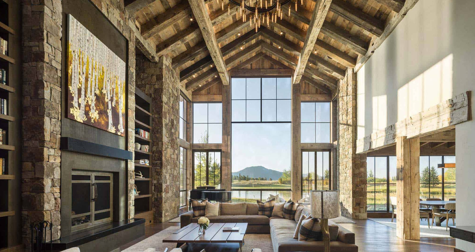 Rustic wood, natural stone, vaulted ceilings and a crackling fire, these serene modern lodges are full of ideas to help bring the mountains into your home.