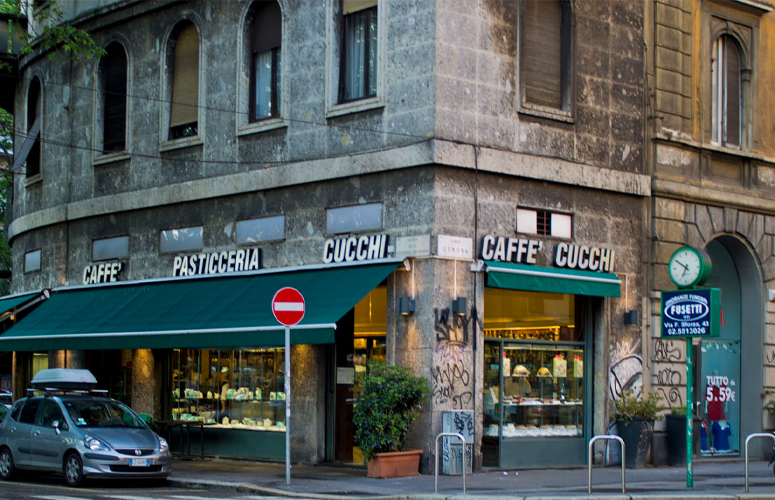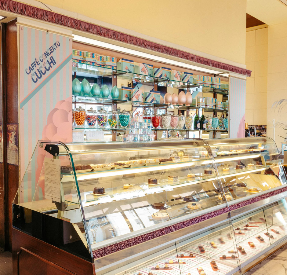 Visionary architect and designer Cristina Celestino reimagined the interior design and uniforms at Milan's venerable Pasticceria Cucchi - for a modern take on dolce vita that is perfectly delightful.