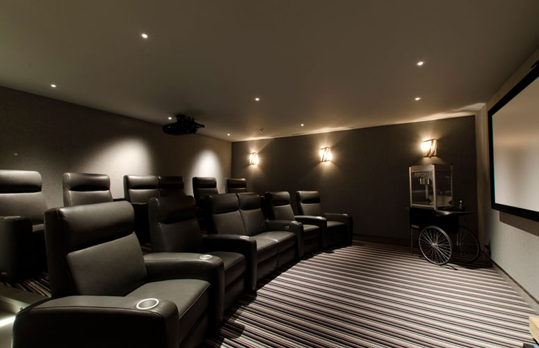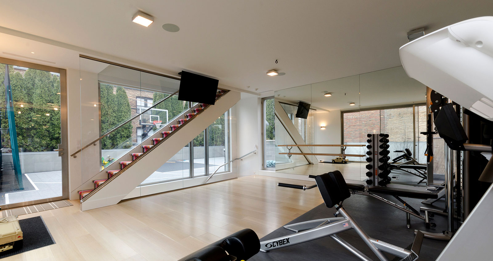 Carefully selected fixtures provide just the right illumination for every purpose without attracting attention to themselves. Sophisticated wall LEDs safely light the stairs both indoors and out. From the bright exercise room to the intimate home theater, the lighting throughout this lovely home sets the mood for each activity.