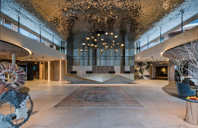 Guests at Alpen Tesitin Hotel will enjoy the amazing beauty and luxury that this sprawling Alpine resort has to offer. Every space is defined by clean lines and natural materials. Panoramic views bring the glorious natural surroundings inside.