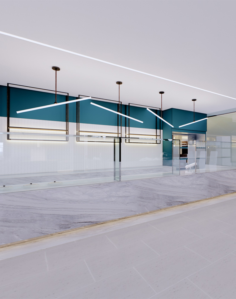 The lighting in this concept is equal parts intentional and inspirational. TruLine from PureEdge Lighting effortlessly flows up and down walls and across ceilings, providing helpful guidance while creating a dynamic and clean look for the space. It installs neatly into the drywall, making expensive retrofits unnecessary and reducing installation costs overall.
