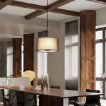 The Saturnia Pendant features a dual-layered shade with a transparent outer layer and white interior for a unique, ethereal look. Saturnia's understated elegance is perfectly suited to living rooms, dining rooms, or any space in need of decorative but functional lighting. Compatible with sloped ceilings.