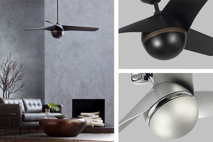 Sleek and chic, the Akova brings mid-century modern form into the present day, with clean, curved blades and a rounded globe center. The pared back design makes it a welcome addition to any style space, keeping you cool without stealing the show.