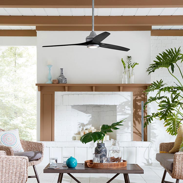 Large and in charge, featuring eight fan blades and capable of withstanding high heat and unbearable humidity, the Minka Aire Xtreme H20 84 Inch Ceiling Fan can cool off a variety of porches and patios. With six separate speed options, Xtreme moves over 12,000 cubic feet of airflow per minute, getting you through every heatwave imaginable. If you’re looking for a fan with an industrial-contemporary feel that complements your space, the Xtreme H20 Fan is worth a look.