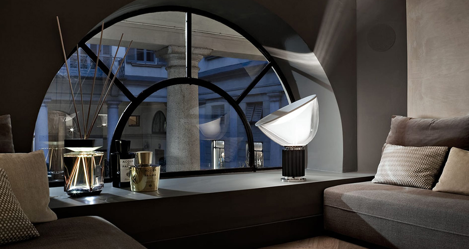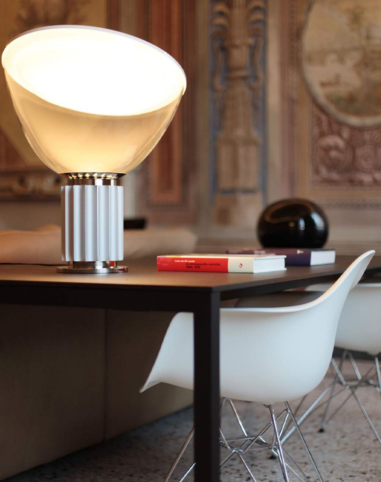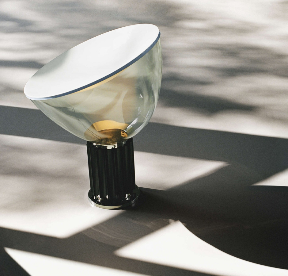 From the imaginative and innovative Castiglioni brothers, the meticulous design of the Taccia Table Lamp impresses while serving an essential function: keeping its component parts from overheating.
