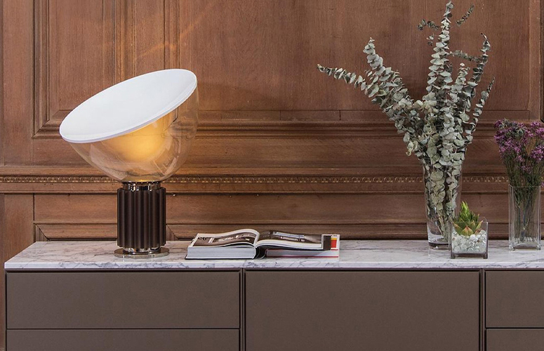 Designed by Achille and Pier Giacomo Castiglioni in 1958 and 1959, the Taccia Table Lamp was showcased at the Institute of Design in Chicago in March of the same year. FLOS started selling the Taccia Table Lamp in 1962.