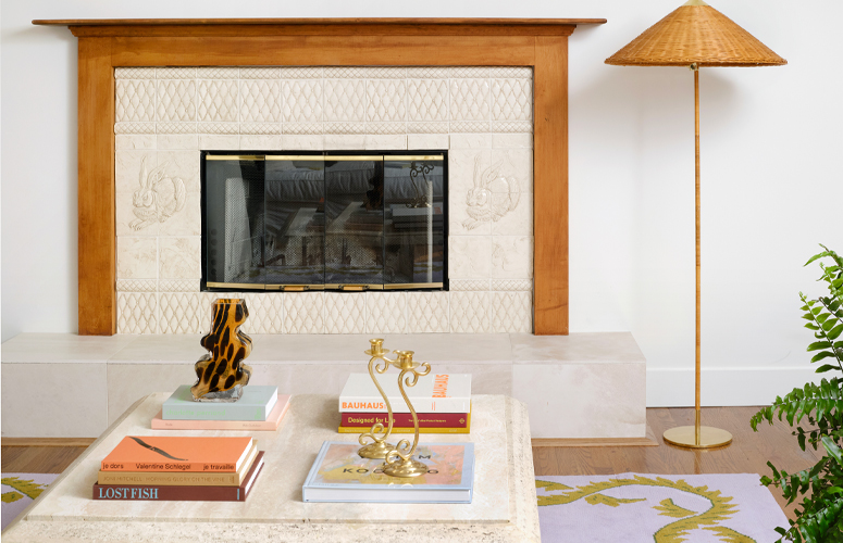 The playful Tynell 9602 Floor Lamp complements the whimsical bunny-relief fireplace in the living room. In the family room, the moon-shaped Mezzaluna Floor Lamp defines a cozy corner with perfect reading light.