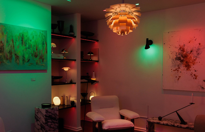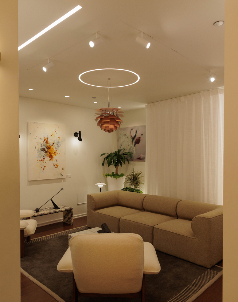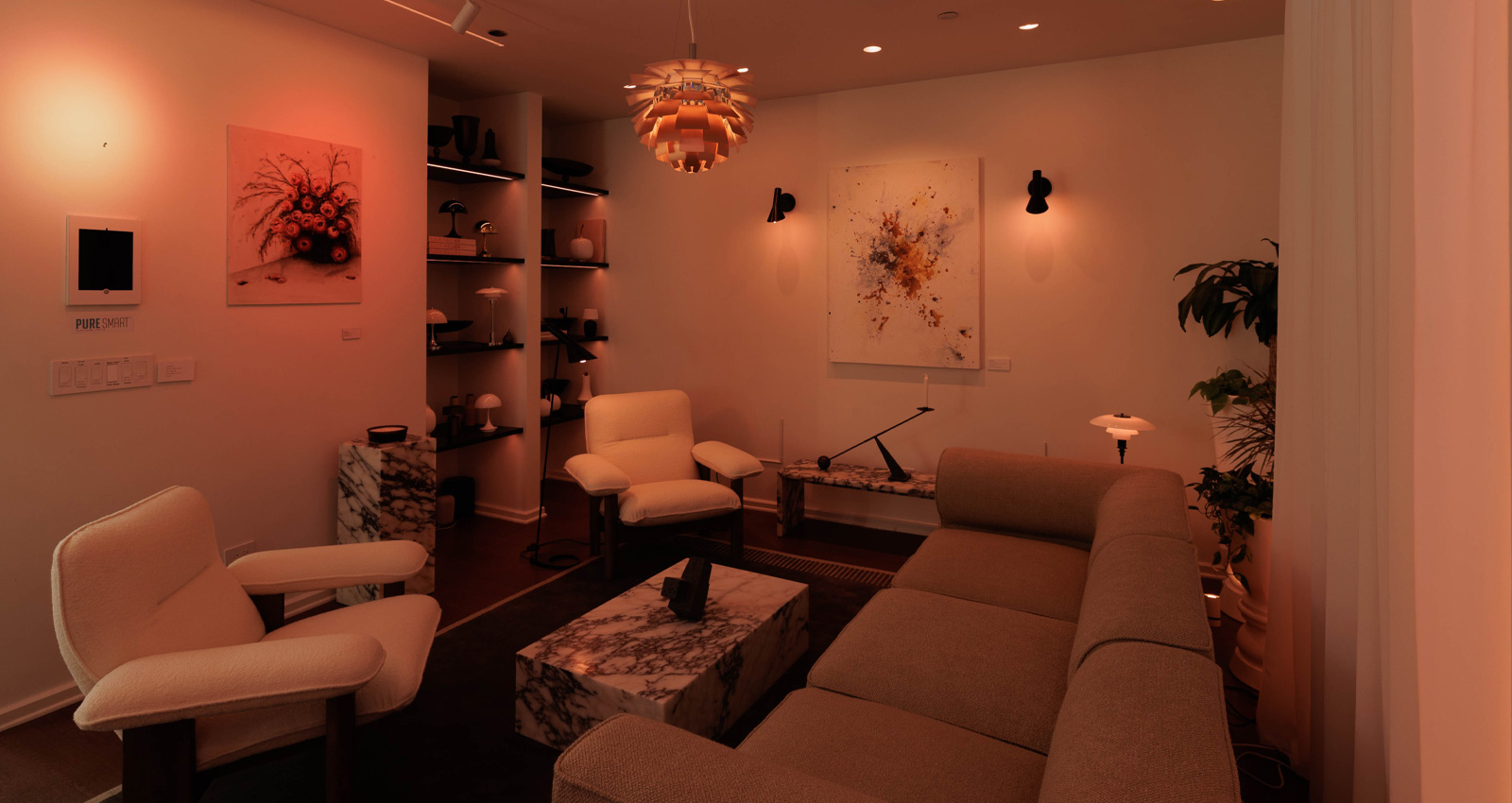 The quiet elegance of Scandinavian design glows in this elevated space, demonstrating how smart lighting and advanced tunable white solutions can shape atmosphere, highlight materials, and enhance the overall experience.