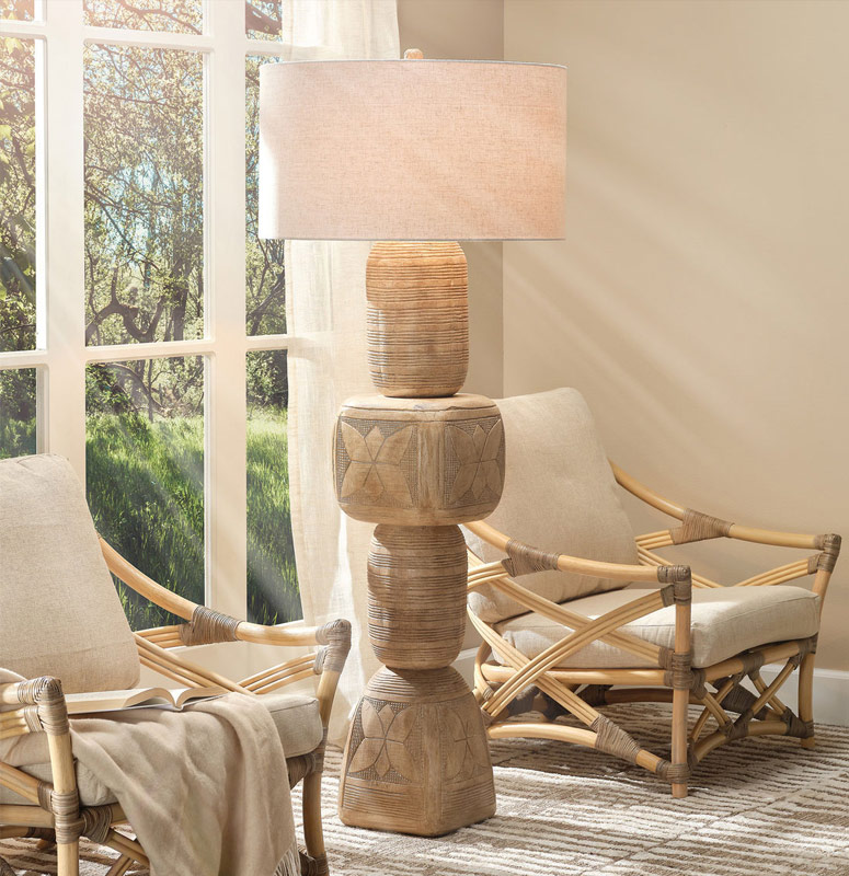 Natural materials, such as wood, stone, bamboo, rattan, and seagrass, can add warmth, beauty, texture, and sustainability to any interior design. Use natural materials to create focal points, add texture and interest, create a warm and inviting atmosphere, and create a sustainable and eco-friendly home. Check out our collection of fixtures, decor, and accents crafted from natural materials, ceramic sconces, and ceramic pendants.
