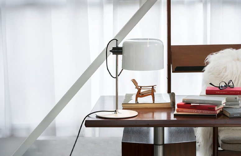 Originally, Coupe was only available in black or white. To mark the lamp's 50th anniversary, Oluce released just 500 of the Coupe 3321 Gold Limited Edition Floor Lamps. These sleek, gold trim lamps feature a 50th anniversary engraving on the base. In 2021, Oluce expanded the collection to include the diminutive Mini Coupe Desk Lamp in a range of bold new colors.