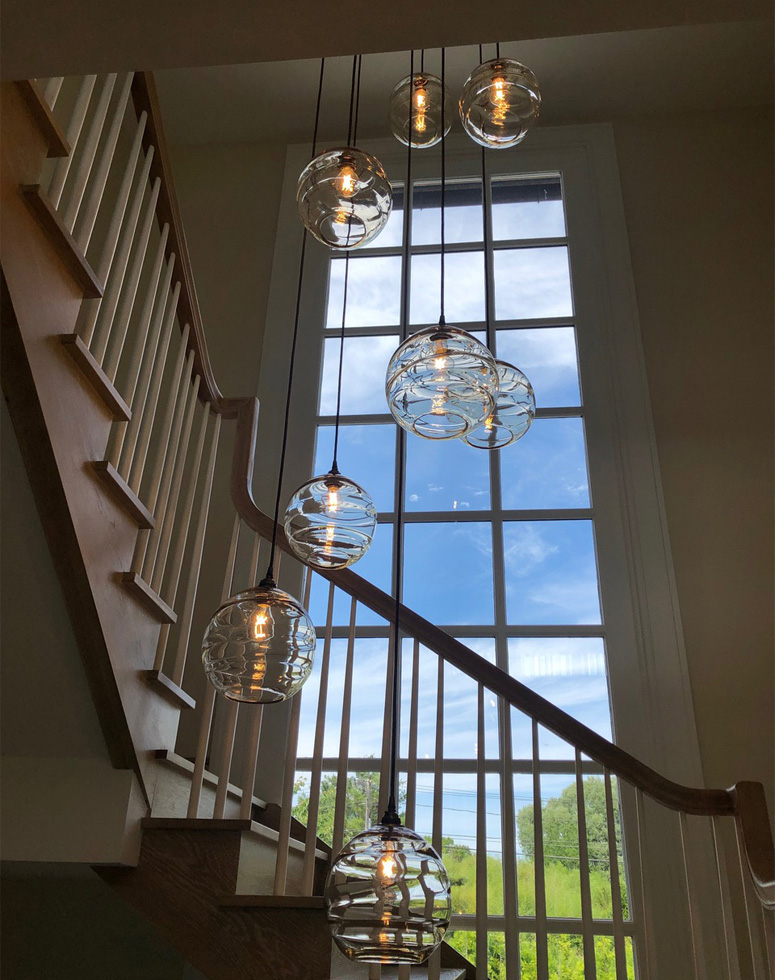 Upon closer look, each piece of glass reveals its own intricate, organic texture. This is how artisan glass lights cast fascinating shadows on the surrounding ceilings and walls, adding dramatic effects and atmosphere. Streamlined fixture designs contrast with these glass diffusers, allowing them to shine in ways that could be described as otherworldly.