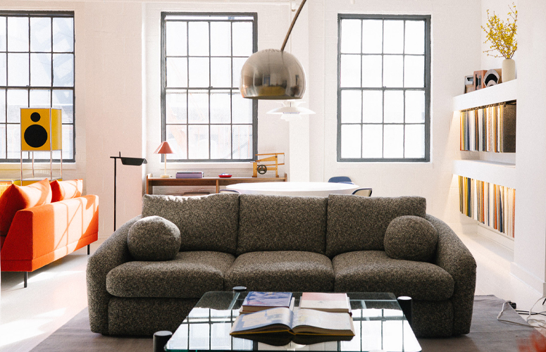 Spanning 3,000 square feet, Symbol's new showroom has the vintage feel of a 1970s New York City artist's loft. Exposed brick, factory windows and high ceilings provide the backdrop for Symbol's distinctive furniture collections.