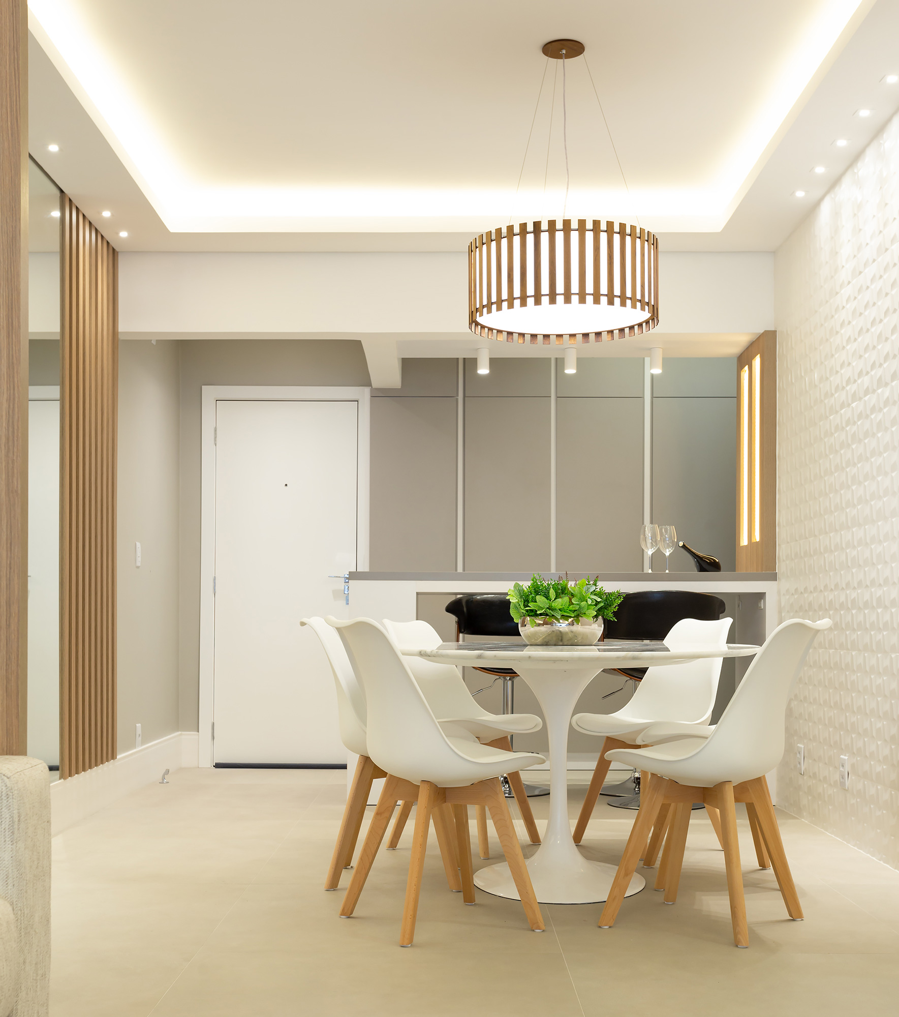 To improve your dining room décor, use dimmers with your chandeliers, pendants or ceiling lights to create a more comfortable space and reduce glare over the table. For an eco-friendly lighting solution, warm dim LED fixtures and LED bulbs save energy while offering the same comforting, amber glow of halogen and incandescent light sources when dimmed. Be sure that all fixtures have their own dimmers that match the bulb types and/or power supplies.