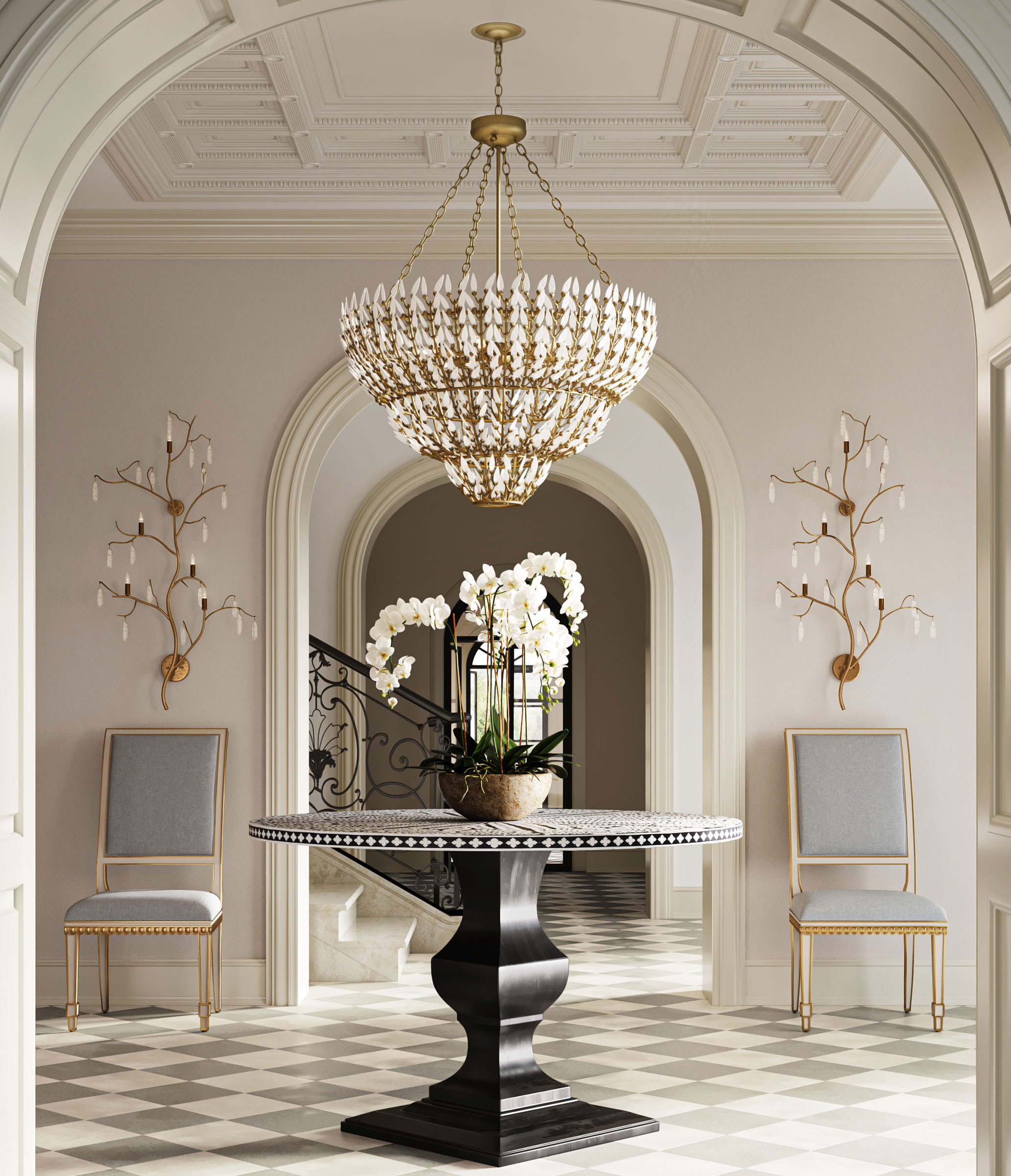 First impressions are important. Give your entryway or foyer the look it deserves with chandeliers, suspensions, pendant lighting, table lamps and other decorative home accents. Browse foyer chandeliers and more from brands like Arteriors Home, Jonathan Adler, Crystorama, the Lightology Collection and more.