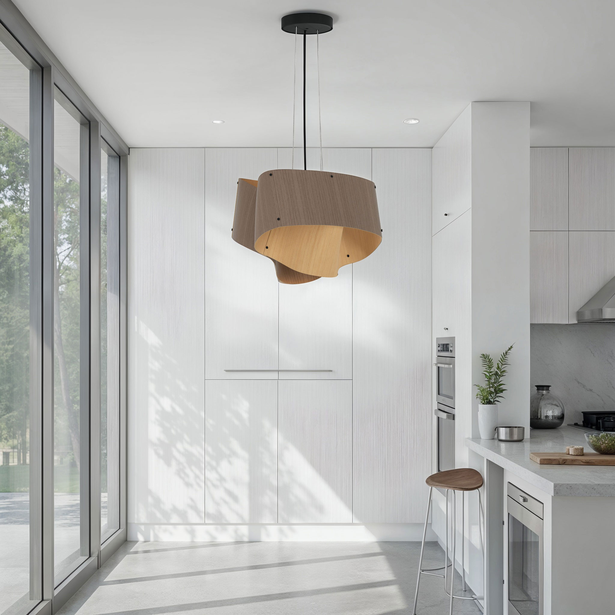 Hanging pendants, chandeliers or linear suspensions over the kitchen island offers ambient lighting and a visual centerpiece for the room. Before selecting your pendants or suspensions, take the size of your kitchen island into account; large pendants above small islands can look imbalanced and act as a visual barrier in the space.