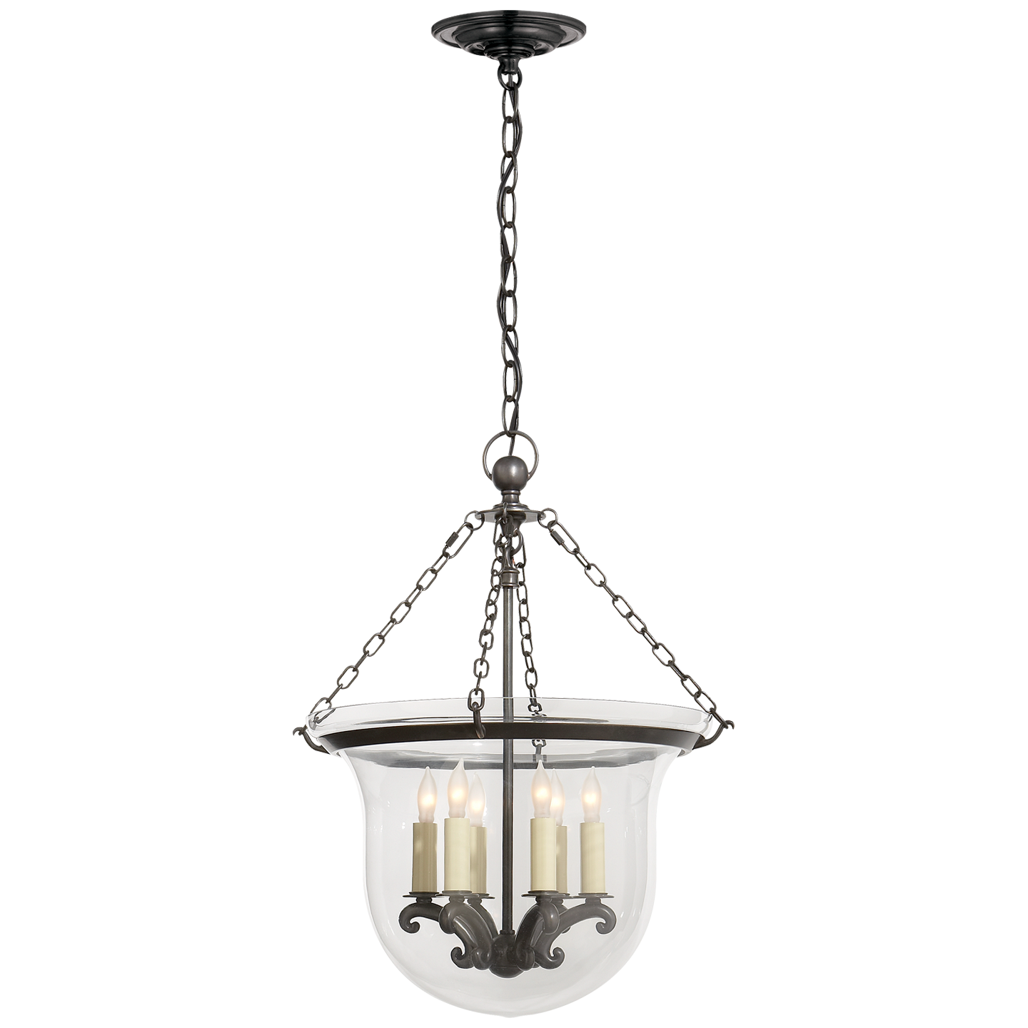 The Country Bell Jar Pendant brings a contemporary, yet industrial look to your interior space. The bold, decorative frame is complemented by a smooth glass surrounding an inner candelabra that casts warm light across your room.