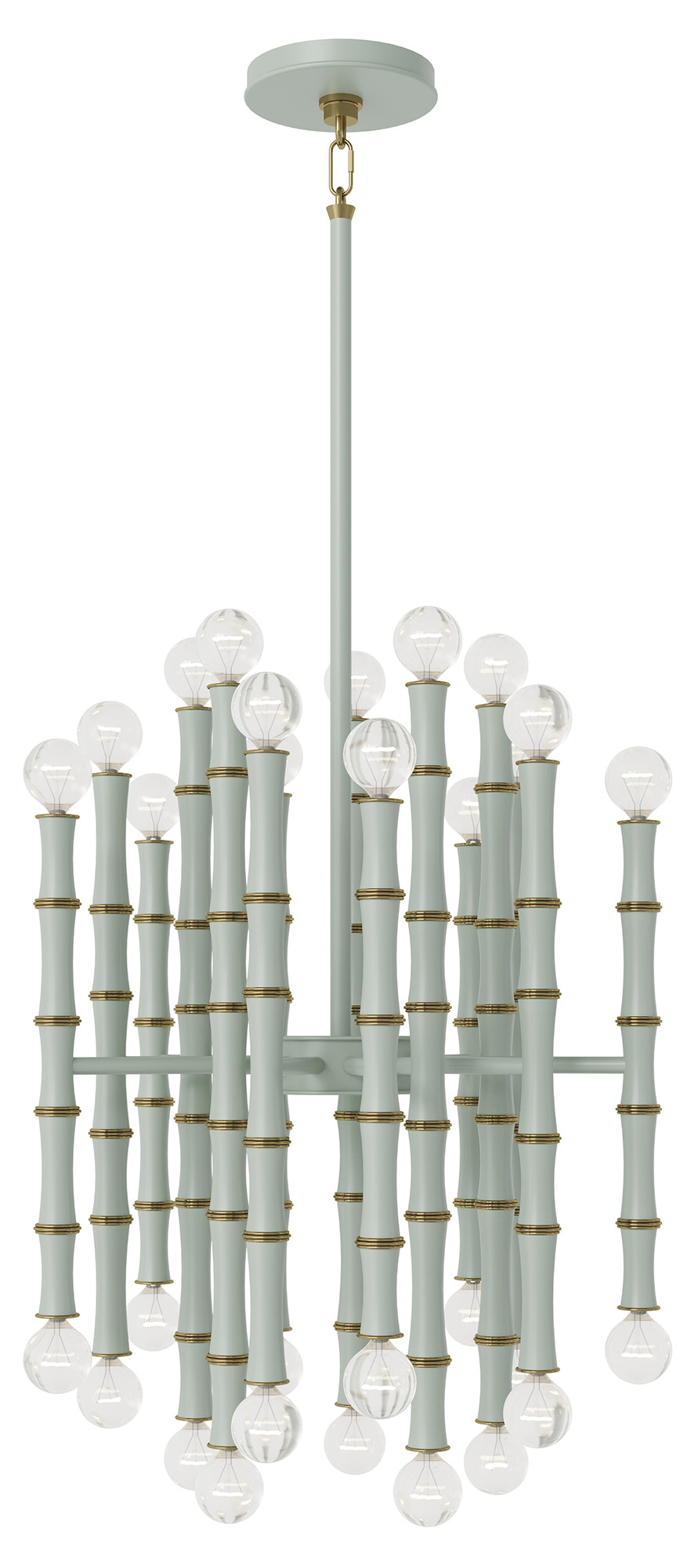 The Kane Chandelier is inspired by Bamboo shoots found in Asia, bringing a far east look to your interior space. Each stem has a metal accent finish and is capped on each end by bare bulbs that cast warm light across your room.