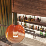 The Phenomena Globe Pendant was inspired by simple shapes. The term phenomenon comes from the Greek word appearance. This seems fitting for this fixture, as what you see is what you get. The simple design gives a soft easy feel making it suitable for a wide variety of styles. The glass globe is mouth-blown thus the intensity of color and gradient may slightly vary. Mix and match pieces from this collection for a fun, stylish appeal. TRIAC dimming.
