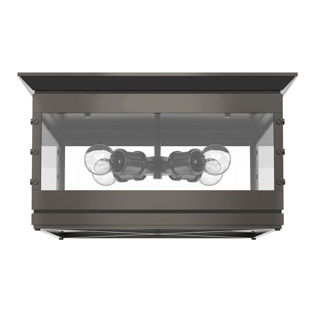 The Douglas Ceiling Light Fixture features a Steel frame with an Urban Bronze or Vintage Brass finish and clear glass shade. UL listed.
