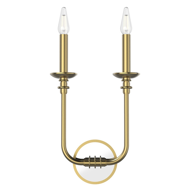 The Peabody Wall Sconce features steel arms with a Vintage Brass finish.