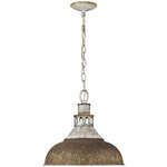 Kinsley has a rustic, vintage appeal that is perfect for homes with eclectic or farmhouse decor. The Aged Galvanized Steel frame balances the numerous antique shade color options offered in this collection. The hand-painted series has a distressed, weathered look. The pendants are large enough to hang over small dining room tables, over kitchen countertops, and in living rooms. Hang the fixtures alone or group together for a charming look.