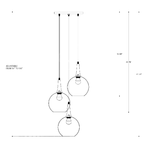 Beckett Trio Pendant features wrought iron with an Emery Rust finish and glass shades. Three 60 watt 120 volt Edison A-shape medium base incandescent bulbs are required, but not included. UL listed. Individual globes are 9 inch diameter. 18 inch diameter x height adjustable from 12 to 108 inches. Ceiling canopy is 12 inch diameter x .75 inch height.