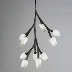 The Blossom Multi Light Pendant features organically formed Morning Frost Glass and Clear Glass emulating closed flower petals and concealing LED light sources. Features a stem like structure in a Black or Natural Aged Brass finish. Available in two sizes. ETL listed.