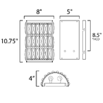The Madeline Wall Sconce features rectilinear Beveled Crystals that bejewel the Matte Black frame to create a stark contrast to this radiantly prismatic display of light. The bound crystal is fixed to the frame to reduce time spent dressing the fixture. Place where layered lighting is needed most. ADA compliant. ETL listed.